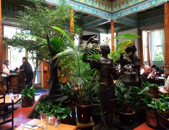 Con paneles de cerámica en las paredes que representan figuras islámicas y grandes ventanas que dan una iluminación mística al lugar. Por dentro hay grandes plantas y figuras típicas del país, como la “Fuente de las siete bellezas” (basado en un poema).