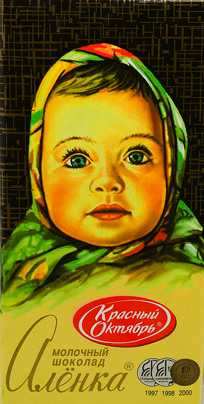 Alenka: Barra de chocolate, quizás la más popular de todo el país. Inconfundible por el rostro de la niña que viene en su envoltura (imagen del post). Uno de los pocos dulces que sobrevivió el colapso de la época soviética y sigue encantando a las nuevas generaciones por su dulce sabor a cacao con leche. Para leer más sobre la historia de este chocolate click aquí
