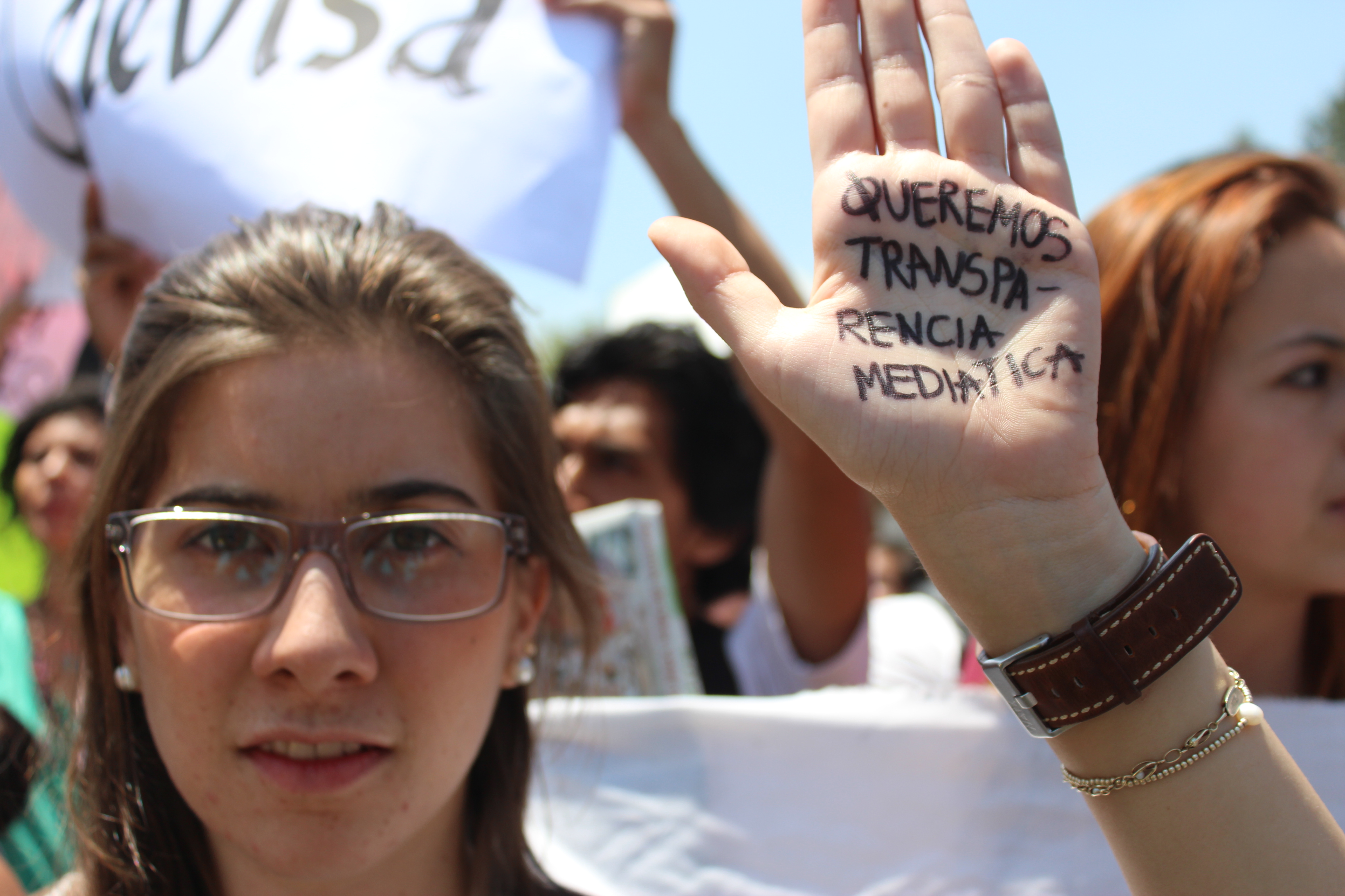 "We want transparency in media" demands a student. Picture taken by Andrea Arzaba.